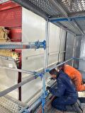 Bij een glasfabriek is een rookgas filter van ca 200 graden volledig gestraald, platen verlijmd en daarna opnieuwe gecoat.
