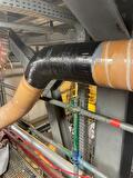 Leiding compleet versleten door het medium wat door de leiding gaat, Leiding onder druk dichtgezet en daarna volledig gewrapt met een carbon. Standpijp van de leiding is jaren verlengd.